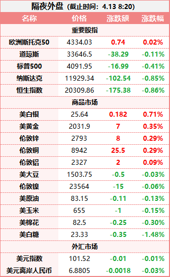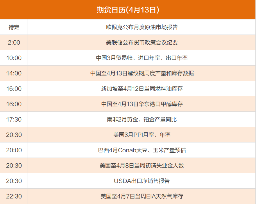 东方财富期货财经早餐 4月13日 周四