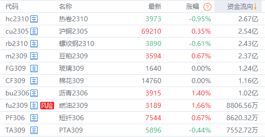 资金流向![]() ![]() 宏观要闻央视新闻客户端:今天(13日) 上午10点,国务院新闻办召开新闻发布会,海关总署相关负责人介绍,一季度我国外贸进出口同比增长4.8%,外贸进出口开局平稳,逐月向好。海关统计显示,今年一季度,我国外贸进出口总值9.89万亿元,同比增长4.8%,其中出口5.65万亿元,同比增长8.4%;进口4.24万亿元,同比增长0.2%。 财联社:当地时间周三(4月12日),美联储发布了3月21日至3月22日的联邦公开市场委员会(FOMC)货币政策会议纪要。政策制定者认为,美国银行业危机的影响可能使该国经济在今年晚些时候陷入衰退。 上海证券报:港口是外贸的“晴雨表”,今年以来多地港口吞吐量持续增长。3月,上海港海铁联运箱量突破5万标准箱大关,创月度历史箱量新高,同比增幅达24.7%;上港集团独山公司3月集装箱吞吐量同比增长71.7%,一季度累计完成箱量近10万标准箱……各港口空箱堆积情况正在改善,运价开始回升。 品种资讯钢材:钢谷网数据显示,截至4月13日当周,全国建材社库1086.13万吨,较上周减少13.37万吨,下降1.22%;厂库645.96万吨,较上周减少11.28万吨,下降1.72%;产量466.15万吨,较上周减少4.99万吨,下降1.06%。(新华财经) 煤炭:海关总署数据显示,能源产品、消费品等进口增长。一季度,我国原油、天然气和煤炭等能源产品,合计进口7587.2亿元,同比增长9.1%,占进口总值的17.9%。(财联社) 原油:美国能源部长又改口了!据英国金融时报报道,美国能源部长Jennifer Granholm周三表示,拜登政府计划尽快补充美国战略石油储备(SPR),希望在今年余下的时间里,以对纳税人有利的方式,以较低的价格补充。(期货日报) 中国汽、柴油批发价格显示,4月12日中国汽、柴油批发价格继续上涨。全国92#汽油平均批发价格为8903元/吨,较前一日上涨32元/吨;柴油(含低凝点)平均批发价格为7870元/吨,较前一日上涨22元/吨。(新华财经) 橡胶:据轮胎报消息,4月11日,中策橡胶集团股份有限公司向全国经销商发布调价通知称,近期原材料价格持续上涨,轮胎制造成本不断攀升,公司决定4月15日起,对部分全钢子午线轮胎产品价格上调2—5%。(期货日报) 玻璃:中信证券研报指出 ,需求端来看,随着地产销售好转,在带动真实需求回暖的同时亦使下游贸易商/深加工企业的信心修复,预计需求拐点已至;供给端来看,当前在产产能处在2020年以来的低位,冷修产线短期或难以复产。供需持续优化叠加成本端压力有望缓解,看好浮法玻璃后续盈利弹性。(财联社) 棉花:据中国棉花信息网,4月13日中国棉花价格指数(CC Index)为15509元/吨,较上个交易日减少7元/吨。(新华财经) (文章来源:东方财富研究中心) (责任编辑:admin) |