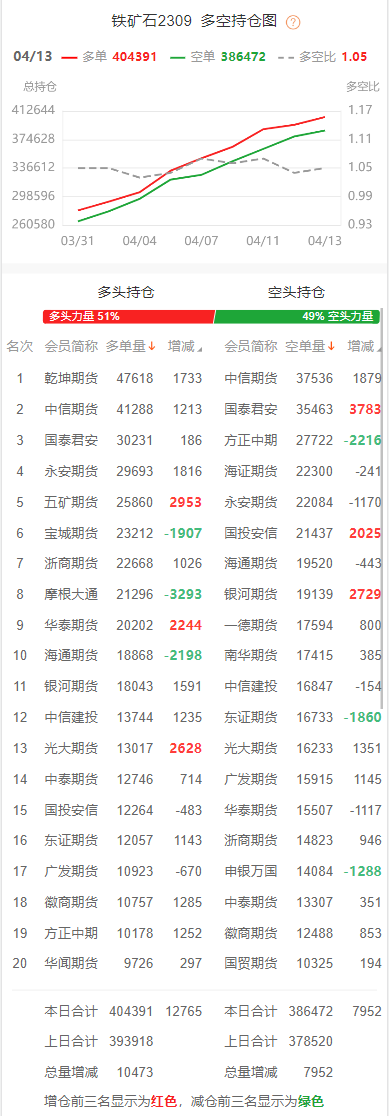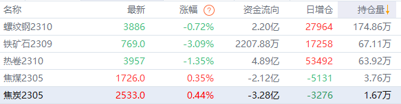 黑色持仓龙虎榜:铁矿石跌3.09% 多头第五名增持近1.4万手螺纹多单