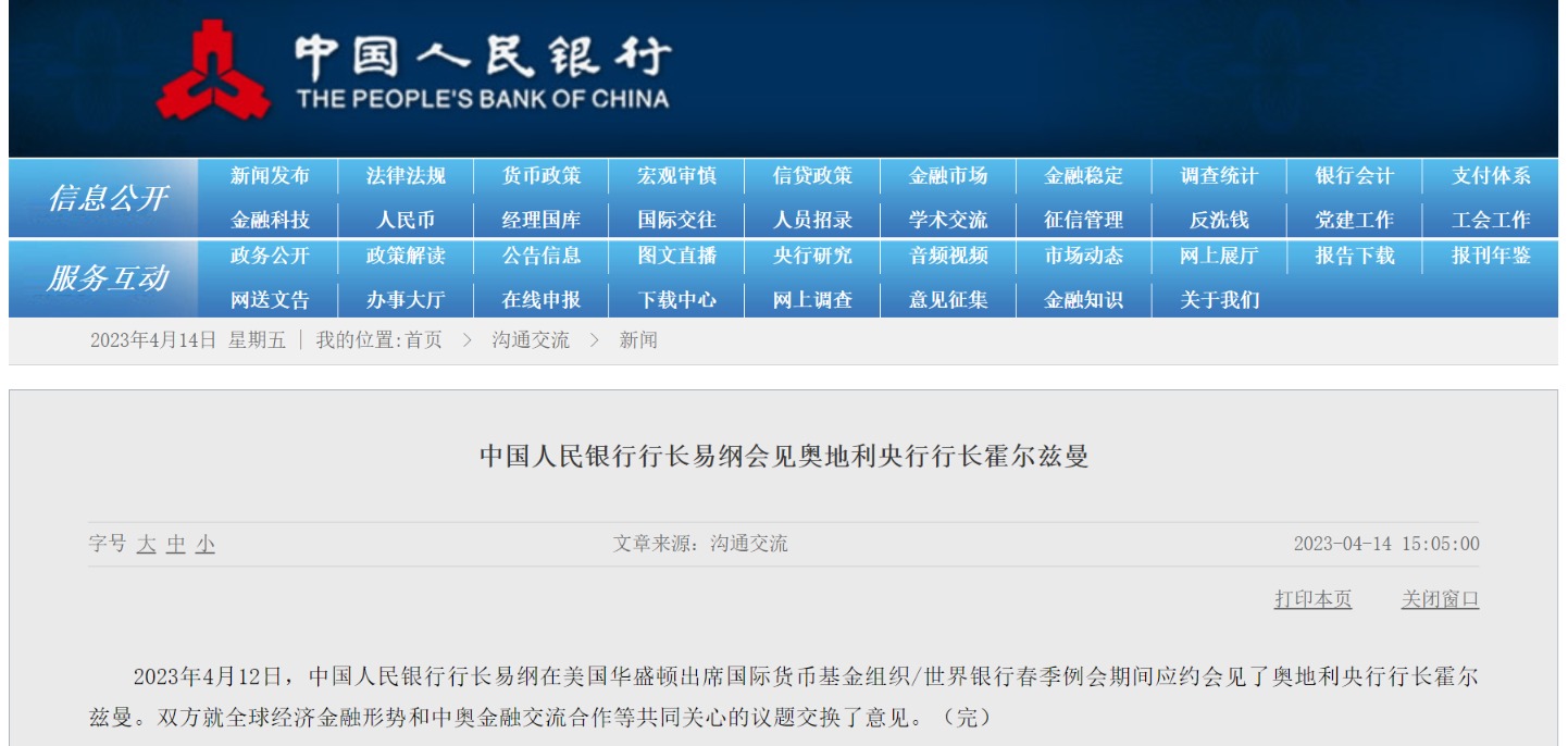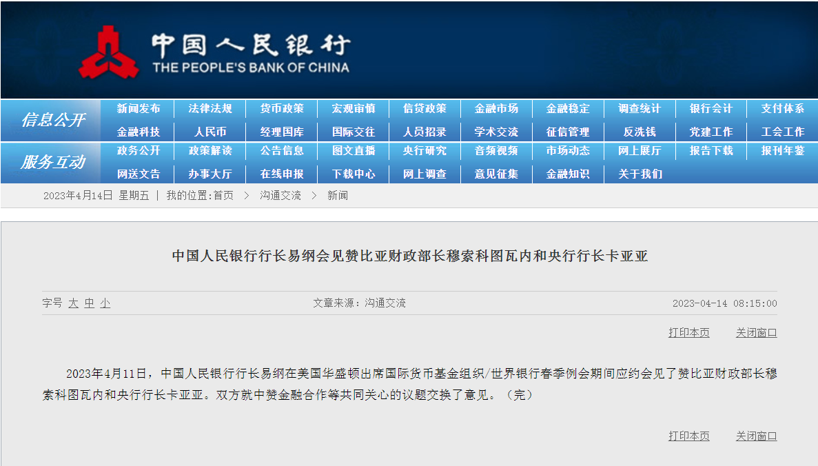 据央行官网,4月10日-12日,中国人民银行行长易纲在美国华盛顿出席国际货币基金组织/世界银行春季例会期间会见了日本、奥地利、瑞士、美国、赞比亚、斯里兰卡、埃塞俄比亚、巴基斯坦8国央行行长或财长及欧盟委员会执行副主席东布罗夫斯基斯。 此外,易纲还出席了于美国华盛顿召开的今年第二次G20财长和央行行长会议。 易纲会见日本央行行长植田和男 2023年4月12日,中国人民银行行长易纲在美国华盛顿出席国际货币基金组织/世界银行春季例会期间会见了日本央行行长植田和男。双方就共同关心的国际经济金融议题交换了意见。 ![]() 易纲会见奥地利央行行长霍尔兹曼 2023年4月12日,中国人民银行行长易纲在美国华盛顿出席国际货币基金组织/世界银行春季例会期间应约会见了奥地利央行行长霍尔兹曼。双方就全球经济金融形势和中奥金融交流合作等共同关心的议题交换了意见。 ![]() 易纲会见欧盟委员会执行副主席东布罗夫斯基斯 2023年4月12日,中国人民银行行长易纲在美国华盛顿出席国际货币基金组织/世界银行春季例会期间会见了欧盟委员会执行副主席东布罗夫斯基斯,双方就中欧经济金融形势和双边合作等议题交换了意见。 易纲会见瑞士央行行长乔丹 2023年4月11日,中国人民银行行长易纲在美国华盛顿出席国际货币基金组织/世界银行春季例会期间会见了瑞士央行行长乔丹,双方就中瑞经济金融形势等议题交换了意见。 ![]() 易纲会见美联储主席鲍威尔 2023年4月11日,中国人民银行行长易纲在美国华盛顿出席国际货币基金组织/世界银行春季例会期间会见了美联储主席鲍威尔,双方就中美经济金融形势交换了意见。 ![]() 易纲会见赞比亚财政部长穆索科图瓦内和央行行长卡亚亚 2023年4月11日,中国人民银行行长易纲在美国华盛顿出席国际货币基金组织/世界银行春季例会期间应约会见了赞比亚财政部长穆索科图瓦内和央行行长卡亚亚。双方就中赞金融合作等共同关心的议题交换了意见。 ![]() 易纲会见斯里兰卡央行行长维拉辛哈 2023年4月10日,中国人民银行行长易纲在美国华盛顿出席国际货币基金组织/世界银行春季例会期间应约会见了斯里兰卡央行行长维拉辛哈,双方就中斯金融合作和国际经济金融形势等议题交换了意见。 ![]() 易纲会见埃塞俄比亚财长希德及埃塞俄比亚央行行长米赫雷图 2023年4月10日,中国人民银行行长易纲在美国华盛顿出席国际货币基金组织/世界银行春季例会期间应约会见了埃塞俄比亚财长希德及埃塞俄比亚央行行长米赫雷图,双方就共同关心的议题交换了意见。 ![]() 易纲会见巴基斯坦央行行长艾哈迈德 2023年4月10日,中国人民银行行长易纲在美国华盛顿出席国际货币基金组织/世界银行春季例会期间应约会见了巴基斯坦央行行长艾哈迈德。双方就共同关心的经济金融议题交换了意见。 ![]() 易纲出席二十国集团财长和央行行长会议 2023年4月12-13日,二十国集团(G20)在国际货币基金组织春季会议期间,于美国华盛顿召开今年第二次G20财长和央行行长会,主要讨论了促进全球经济复苏、完善国际金融架构、发展可持续金融、提升金融部门韧性、促进普惠金融以及国际税收等领域的工作进展。中国人民银行行长易纲出席会议,副行长宣昌能陪同参会。 会议成员普遍认为,受高通胀、货币政策收紧、地缘局势紧张等系列因素影响,全球经济仍面临较大下行风险。部分成员关注近期发达经济体银行业动荡带来的不确定性。各方同意加强政策协调,共同促进全球经济复苏、维护金融稳定。 会议支持加强全球金融安全网,重申将推进国际货币基金组织第16次份额总检查如期完成。各方呼吁更多国家参与特别提款权转借,支持落实好债务处置共同框架,帮助脆弱经济体经济复苏。 会议肯定了G20可持续金融工作组在完善动员充足气候融资机制、促进可持续发展目标相关融资、加强可持续金融能力建设三方面工作的积极进展,期待工作组提出相关政策建议。各方支持加强加密资产监管的国际协调,同意更新《G20普惠金融行动计划》。 易纲在发言中表示,中国经济正在企稳回升,通胀保持低位,房地产市场出现积极变化,预计今年GDP增速将达5%左右。易纲强调,各方应采取切实行动确保第16次份额总检查如期顺利完成,中方愿与各方一道落实债务处置共同框架。易纲感谢各方对G20可持续金融工作组工作的支持,并表示人民银行作为工作组联合主席,将与各方密切合作完成今年工作任务。 (文章来源:每日经济新闻) (责任编辑:admin) |