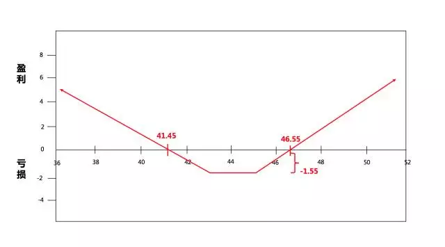 假设该股票下跌至36元时,则策略的收益是43-36-1.55=5.45元