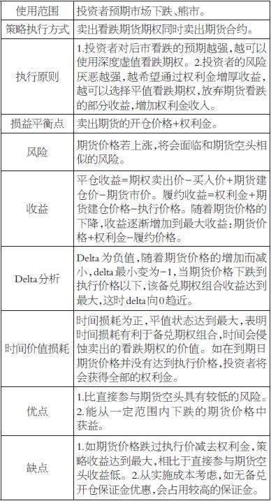 备兑看涨期权是一种较为常见的策略。因为资本、金融市场上大多数的资产长期收益都是向上的正收益,所以备兑看涨策略的实质是:在拥有期货多头的基础上可以卖出一份虚值看涨期权,获得一份权利金。该权利金可视为持有该期货多头的收益增强,或者放弃看涨期权行权价以上期货预期收益的补偿。如果期货价格上涨至看涨期权的执行价格以上,则被期权购买者行权,而作为期权卖出者,需要让渡期货多头头寸。基于该看涨期权为虚值,该投资者既获得了期货价格上涨的部分收益,同时又获得了期权的权利金;如果期货价格并无太大波动,看涨期权购买者不会行权,则该投资者无风险获得了期权权利金;如果期货价格下跌,则该投资者因为拥有期货多头而收益受损,但基于其前期卖出看涨期权,因而有一笔权利金作为期货价格下跌的缓冲。当然,如果卖出平值看涨期权,能够获得更高的权利金,但相应被行权的风险大大增加。由于实值期权包含部分实际价值,期权的时间价值也不是最大,卖出实值期权实现备兑策略没有意义。