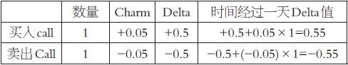 Charm值所描述的是随时间流逝,Delta值对应的变化。深度实值或深度虚值合约,距到期日越远,Charm值越大。平值附近合约临近到期,Charm值会暴增。举例: