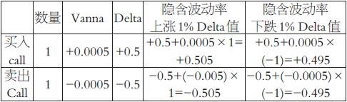 Vanna值所描述的是随隐含波动率变化,Delta值对应的变化。距到期日越远,实值或虚值程度相当的合约Vanna绝对数值越大。举例: