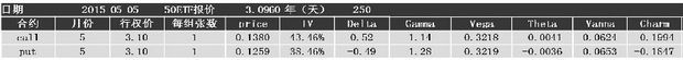 从交易机会分析的角度来看,买入一张5月3.10 Call,预计在3日内标的价格会上涨1%、波动率会上涨1%,获利可以达到每张43.65元。假设资金占用2000元,那么3日的收益率就是2.18%。在资金有限时,可以通过对比多个交易机会的收益率和损益比来择优建仓。