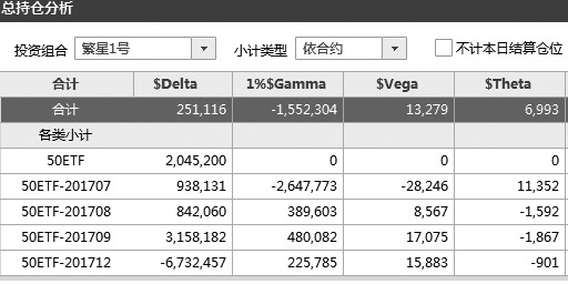 通常我们会使用专业期权软件自带的希腊值汇总功能来分析头寸的风险暴露情况。