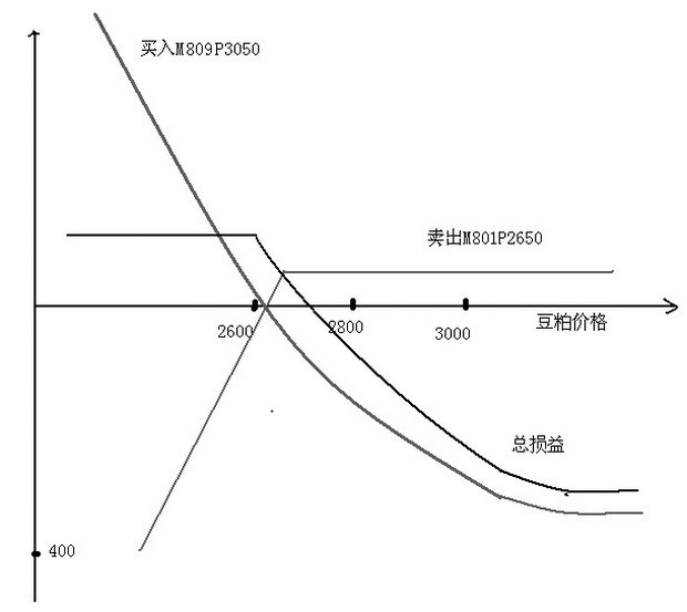 投资者认为豆粕期货后市价格下跌的可能性较大,又不愿意承受太大的风险,从而选择期权对角熊市套利策略。在具体合约选择上,其选择买入一份M809P3050期权合约,价格为352元/吨,同时卖出一份M801P2650期权合约,价格为38元/吨,操作计划是:后续选择M803期权合约、M805期权合约、M807期权合约、M808期权合约、M809期权合约等合约对冲操作。