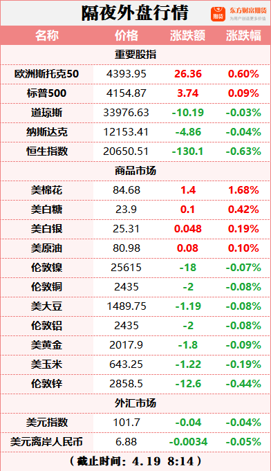 东方财富期货早餐 4月19日周三
