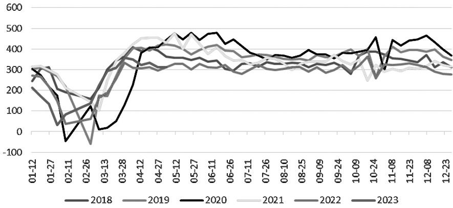 图为螺纹钢表观需求(单位:万吨) 根据钢联的周度库存数据,3月上旬螺纹钢表观消费连续两周突破350万吨,但进入3月下旬,随着需求持续转弱,表需最低回落至310万吨,接近去年同期水平,处于阶段低位。不过,从本周近两日全国建材成交量来看,均值有所回升,且周一成交量创出今年以来的高点,达到21.85万吨,较3月上旬最高值要多出0.67万吨。临近五一假期,节前1—2周有补库需求,短期需求端有边际改善的空间。不过鉴于今年贸易商和终端心态较为谨慎,始终保持低库存,因此,补库量相对有限,或低于往年同期。而金三银四之后随即进入梅雨高温季节,需求或进一步承压。 产量方面,据了解,今年将实行粗钢产量平控,即在2022年10.18亿吨基础上不增不减,下半年再根据实施情况动态调整。国家统计局最新数据显示,1—3月我国粗钢产量26156万吨,同比增长6.1%,上半年实现规模减产的可能性不大,大概率将高出去年同期水平,二季度钢厂产量调节将主要取决于利润波动。近期随着钢价下行,亏损主要集中在电炉厂,生产整体趋缓,但高炉减产动力不强,整体处于盈亏平衡线附近。目前来看,螺纹钢实现规模减产较难,钢产量将持续保持阶段高位。 二季度整体而言,需求预期有走弱的压力。5月中下旬开始逐步进入梅雨淡季,受天气影响,施工或将进一步放缓,若供应端没有规模检修的计划,后续将存在供强需弱的压力,目前螺纹钢连续8周降库,库存降幅逐步趋缓,后续有累库风险,持续关注需求表现。 原料端成本支撑下移 原料端,采暖季过后煤炭系价格明显回落,一方面,蒙煤进口增加,澳煤进口逐步放开,虽目前并未对国内形成规模冲击,但市场预计下半年增量会逐步凸显。且国内生产逐步回升。另一方面,采暖季后煤炭用量回落,保供稳价进一步改善了前期能源紧张的局面。随着供需结构逐步转向宽松,煤炭系价格回落压力加大。焦炭同时受到焦煤成本下移影响,也因钢厂利润收缩带来提降压力,双焦价格的走弱对成材形成拖累。此外,铁矿石二季度海外发运预计将有回升,若终端需求没有明显改善,供需基本面存在边际走弱的压力。整体来看,成本支撑下移将对成材带来负面影响。 综合来看,国内经济稳步回升及基建稳增长托底,将给钢价带来支撑。但随着需求季节性转弱,二季度基本面存在供强需弱的压力,同时,原料端成本支撑将较一季度有所下移,尤其是煤炭系宽松格局或将拖累成材走势。因此,二季度钢价反弹高度有限,高点或将逐步下移,淡季有走弱的压力。(作者单位:中原期货) (责任编辑:admin) |