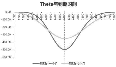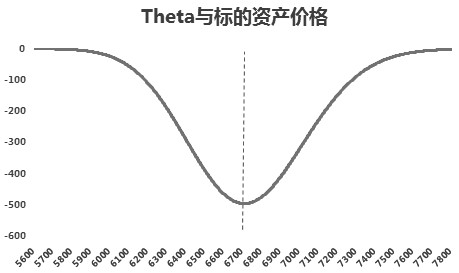 Theta表示在其他因素不变的情况下,时间变动所引起的期权价值的变动量,其具体数值为期权价值对于存续期的一阶导数,是对买方持仓时间成本的度量。其数值恒为负数,平值期权Theta绝对值最大,实值期权和虚值期权的Theta绝对值相对较小。