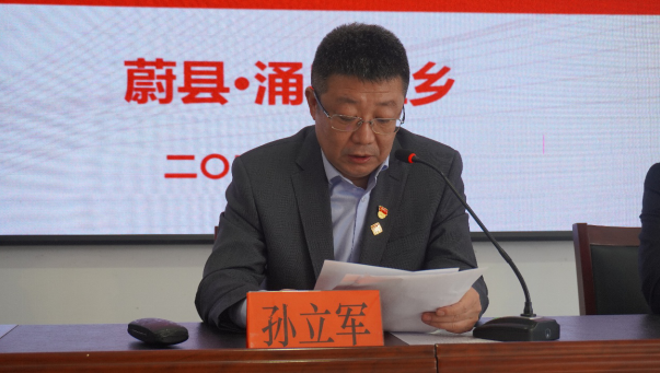 涌泉庄乡书记李飞发言 随后,中天期货党支部书记、董事长孙立军在致辞中表示:根据党中央《关于金融支持巩固拓展脱贫攻坚成果全面推进乡村振兴的意见》精神,中天期货作为金融国企,有责任、有义务在推动乡村振兴战略中发挥自身的重要作用,并把助力乡村振兴作为一项光荣的政治任务和应尽的社会责任抓好抓实。本次与蔚县涌泉庄乡连寨场村合作,精准有效开展帮扶工作,做好连寨场村巩固拓展脱贫攻坚成果同乡村振兴有效衔接,体现了国企履行社会责任,助力乡村振兴的决心。