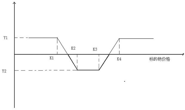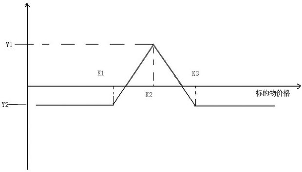 以期权卖出飞鹰式套利策略为例。某投资机构对豆粕期货价格后市没把握,但希望标的物价格到期时能高于高执行价格。该投资机构认为,市场会出现向上突破,但嫌卖出蝶式套利组合所付出的权利金太高,因此愿意将平衡点的距离拉大,减少权利金支出。目前豆粕期货1801合约价格在【K2,K3】之间,某投资者以执行价K1卖出豆粕看涨期权1份,收到权利金C1;以执行价K4卖出看涨期权1份,收到权利金C4;以执行价K2买入看涨期权1份,付出权利金C2;以执行价K3买入看涨期权1份,付出权利金C3。此时,该投资者的净支出为Y2(Y2=K2-K1+C2+C3-C1-C4),也就是最大的风险,发生的条件是豆粕期货1801合约价格处于【K2,K3】之间;最大的收益为Y1(Y1=C1+C4-C2-C3),发生的条件是豆粕期货1801合约价格涨到K4之上或跌到K1以下,所有期权合约都行权和被行权或所有期权合约都不行权和不被行权。综合分析,该策略的最大收益是Y1,最大风险是Y2。从绝对值上分析,一般来说,Y2>Y1,因为K2、K3更接近于平值期权,平值期权的时间价值较高。