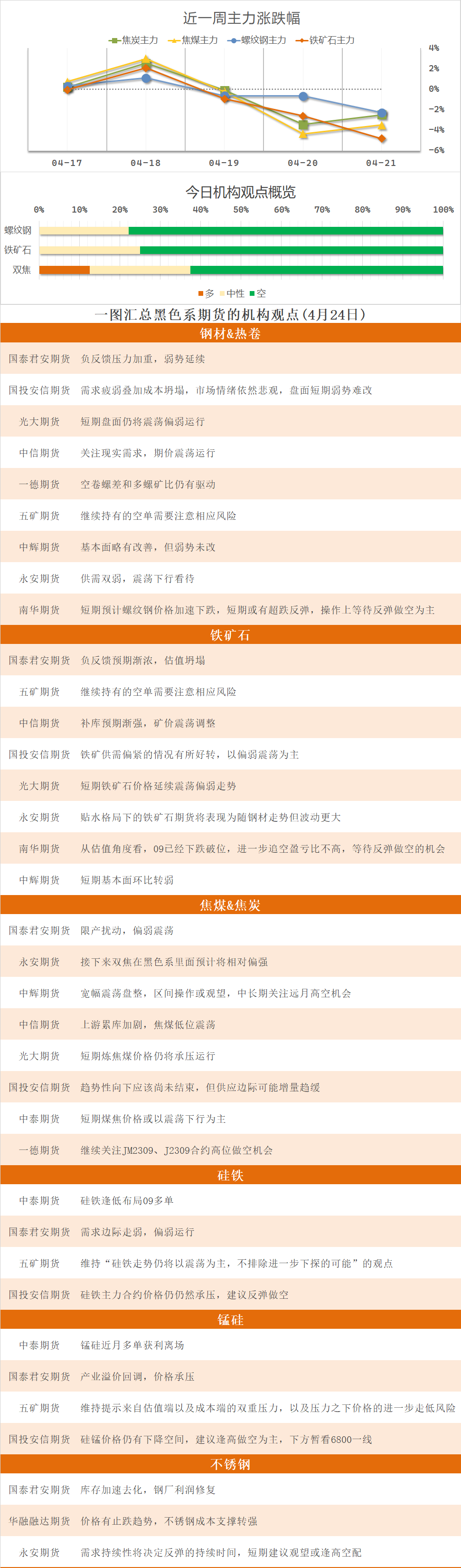 精选 | 黑色系期货观点汇总 4月24日周一