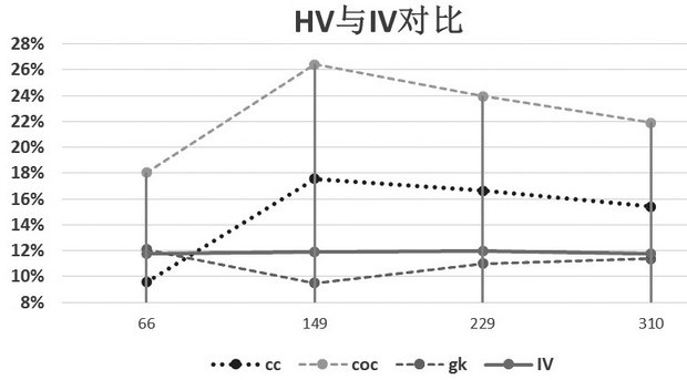 同期IV与HV具有较强的相关性。较为成熟的市场中,衍生品的定价即市场对未来的物走势的预测是较为准确的;在这样的前提下,IV于未来的HV走势较为一致,因此当前的IV对于当前的HV也将具有一定的群聚性、相关性,对更长期的HV有一定的回归性。市场上使用的IV预测模型多以历史数据为基准进行推演,以此为依据交易出的IV自然与HV相关性较大。