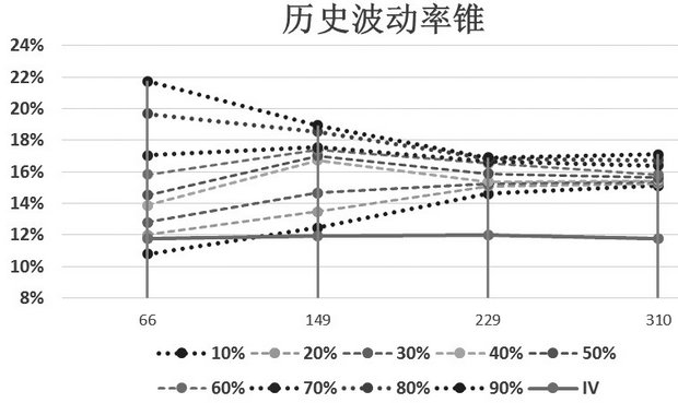 2.用HV与IV历史数据进行统计预测。可根据风险承受能力灵活调整置信度。这种方法对于市场数据没有进行过多的处理,因此可以更好的反映市场真实情况。这也是市场最流行的方法,因此会进一步推动行情向预测方向行进。具体来说可以参考如下一种或几种方法:(1)判断当前HV与IV在HV、IV历史数据中的分位。(2)判断同期IV与HV差值在差值历史数据中的分位。可以根据自设阈值判断,当前HV、IV是否偏高或偏低,从而判断后期HV是否会回落或抬升。(3)通过HV均线系统(类MACD)预测IV走势。(4)在大趋势基础之上,根据各期限IV相对位置,分别确定各期限IV走势,同样不适用于期限结构不稳定的标的。