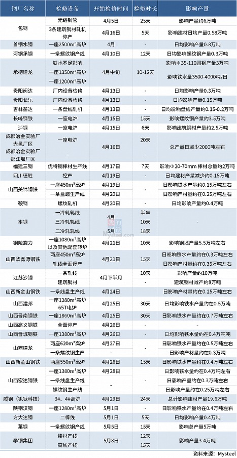 近期,国内市场钢材价格出现持续快速下跌,钢铁企业生产经营面临严峻挑战。 4月25日,上期所螺纹钢期货主力合约下破3700元/吨关口,最终报收3685元/吨,下跌1.55%,刷新今年以来新低价格。4月以来,螺纹钢价格跌幅已约达10%。 中国钢铁工业协会(下称中钢协)当天官网显示,4月24日,中钢协在鞍钢召开一季度部分钢铁企业经济运行座谈会。鞍钢、中国宝武、首钢、河钢、沙钢等16家钢铁企业主管经营工作的负责人参加了会议。 会上指出,整体来看一季度钢铁企业总体生产经营形势环比向好,多数企业实现了良好开局,但同时面临需求不及预期、市场波动较大、成本大幅回升等困难。 面对困难局面,中钢协呼吁钢铁企业应坚持“三定三不要”原则,主动减产,共同维护钢铁市场平稳运行。 “三定三不要”原则,即以销定产,不要把现金变成库存;以效定产,不要产生经营性“失血”;以现定销,不要把现金变成应收款。 据兰格钢铁消息,4月24日下午,西北联合钢铁有限公司(下称西北联钢)在晋南钢铁集团召开关于协调限产会议。 为响应中钢协“三定三不要”的行业自律原则,西北联钢各股东钢企及区域内主要钢企计划从4月25日开始自发自律进行减停产,减产比例不低于30%,涉及高炉15座以上(包含前期已停产高炉),减产时间暂定至5月底,复产时间待定。 西北联钢由陕西钢铁集团有限公司、山西建龙实业有限公司、山西晋南钢铁集团有限公司、山西晋城钢铁控股集团有限公司、山西高义钢铁有限公司、山西建邦集团有限公司等六家单位发起组建,共包含九家钢铁生产企业。 目前正处在“金三银四”的旺季需求阶段,但因供需矛盾累积,多家钢厂已发布停产检修计划。 据我的钢铁网不完全统计,截至4月25日,国内有30家钢厂发布检修计划。 其中,山西省21家钢企中九家钢企将于26日起陆续执行高炉减停产计划,本次新增减停产计划高炉十座,涉及铁水产能约4.25万吨/日,折算铁矿石日均消耗6.8万吨,约占山西省铁水总产能20%。部分减停产的高炉计划停产10-15天,其余高炉复产时间尚未说明。 ![]() 国内钢厂检修计划图片来源:我的钢铁网中钢协数据显示,4月中旬,21个城市五大品种钢材社会库存1170万吨,环比下降3.9%,但较年初增加418万吨,上升55.6%;比上年同期减少164万吨,下降12.3%。 中钢协副会长唐祖君表示,钢铁行业已经进入调整转型期,需要准确研判形势,主要有四大因素需要考虑:一是当前世界百年未有之大变局加速演进,不确定性、不稳定性因素明显增多;二是全球经济形势不容乐观;三是国内消费恢复不及预期;四是投资对钢材需求的拉动作用越来越弱。 对于未来行业运行走势,在上述中钢协座谈会上,一季度部分钢铁企业经济运行座谈会上,与会代表认为,二季度和下半年钢铁市场不确定因素仍较大,预计钢价总体或呈现弱势震荡走势。 总体来看,后期随着国家稳增长措施的效果逐步显现,钢铁市场供需格局或将有所改善,钢铁行业仍将保持平稳运行。 华创证券也表示,随着经济逐步复苏,需求逐步释放,同时供给端在产量控制背景下未来或有所收缩,钢铁企业业绩有望逐步修复。 (文章来源:界面新闻) (责任编辑:admin) |
