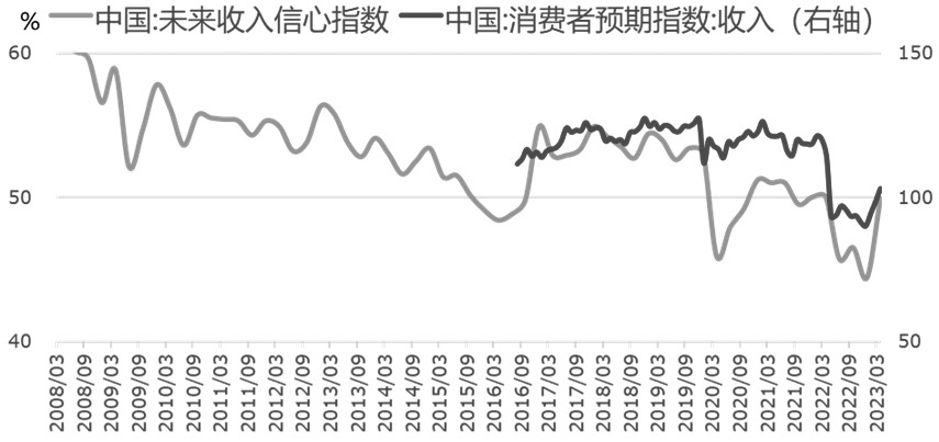 图为各股指风险溢价率 经济修复斜率被持续修正 2022年11月至春节前夕,在经济复苏的强预期下,股市无视弱现实,迎来反弹行情。而随着全国两会召开、经济数据陆续出台,发现弱现实并不弱,只是经济修复斜率及成色的预期差导致资本市场对政策面、基本面的预期持续修正,风险偏好下降,股指风险溢价率重回上行通道。 预期差其一在于经济复苏相对温和。本轮经济修复的路径是以基建投资为引领,带动就业和收入预期的好转,提升消费意愿及能力,从而带动消费及房地产市场的复苏。正反馈传导机制的形成并非一蹴而就,经济整体复苏斜率偏缓。 预期差其二在于消费复苏结构分化。3月社会消费品零售总额同比增速大幅抬升,结合CPI增速回落及分项数据,以餐饮为代表的服务消费回暖,汽车受打折去库销售策略提振量涨价跌,而家具、家电、房租等地产相关消费仍偏弱,整体呈服务消费复苏强于大宗消费的特征。居民“超额储蓄”是消费能力短期释放的重要源泉。金融机构各类存款规模3月同比增速由2021年8月的8.3%持续抬升至12.7%。这部分“超额储蓄”的陆续释放对服务消费、小额消费形成有力支撑。但是,消费意愿的提升有赖于居民就业和收入预期的彻底好转,3月青年人失业率进一步走高,意味着消费内生增长动力的修复仍需时日。 预期差其三在于房地产复苏进度相对缓慢。投资端,房地产开发投资仍是拖累项。销售端,1—3月房地产销售面积累计同比降幅收窄,3月70个大中城市新建商品住宅价格指数和二手住宅价格持续环比连续两个月为正,价格企稳态势初现。不过,30城商品房成交活跃度自3月以来再次转弱,二手房及租赁房挂牌指数和挂牌价格指数亦环比回落,说明市场主体对于房地产市场的预期存在分歧,房地产市场的筑底将持续一段时间。 企业和居民预期边际好转