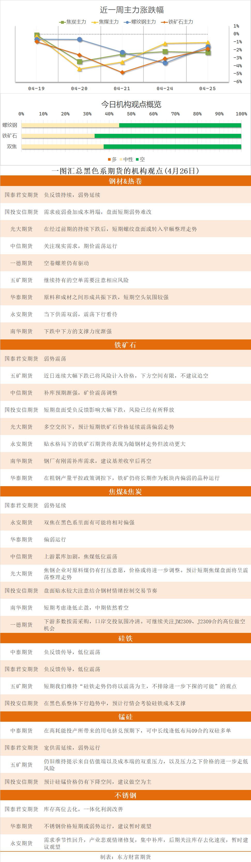 精选 | 黑色系期货观点汇总 4月26日 周三