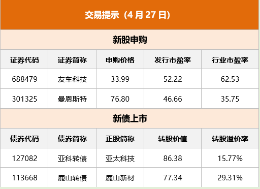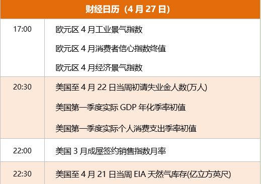 东方财富财经早餐 4月27日周四