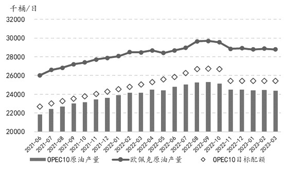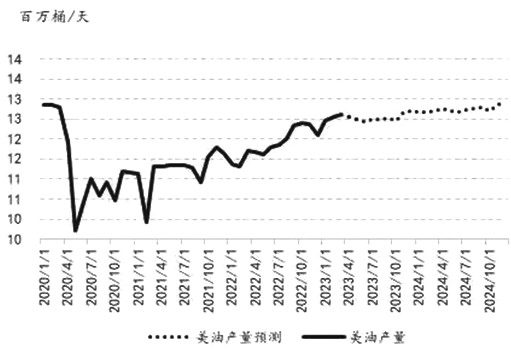 图为EIA美国原油产量预测 [OPEC月报] 世界经济 鉴于各主要经济体在2022年下半年经济表现好于预期,2022年世界经济增长预测小幅上调至3.3%,2023年世界经济增长预测维持不变为2.6%。美国2022年和2023年的经济增长预测分别维持在2.1%和1.2%。欧元区2022年和2023年的经济增长预测分别维持在3.5%和0.8%。日本2022年经济增长预测下调至1%,2023年维持在1.2%。2022年中国经济增长预测维持在3%不变,2023年经济增速预期为5.2%。印度2022年的经济增长预测为6.7%,而2023年的经济增长预测仍为5.6%。巴西2022年和2023年的经济增长预测分别为2.9%和1%。尽管2022年下半年的增长势头预计将持续到2023年上半年,但全球经济将继续应对许多挑战,包括高利率(特别是欧元区和美国)、高通胀以及许多地区的高主权债务水平。 3月OPEC产量 3月,OPEC原油产量为2879.7万桶/日,较2月减少8.6万桶/日。主要的原油产量增加国是沙特(增加4.4万桶/日),安哥拉(减少6.4万桶/日)、伊拉克(减少1.8万桶/日)和尼日利亚(减少1.7万桶/日)的原油产量下降。 供应预测 OPEC月报预计2023年非OPEC石油供应同比增加143万桶/日至6719万桶/日,与3月预估持平。预计2023年石油供应增长主要来自美国、挪威、巴西、加拿大、哈萨克斯坦和圭亚那,而产量的下降预计主要发生在俄罗斯,但2023年地缘政治形势和美国页岩油产量仍具有较大不确定性。OPEC月报预计2023年美国石油产量同比增加104万桶/日至2024万桶/日,较3月预估减少3万桶/日;OPEC预计2023年俄罗斯石油产量同比减少75万桶/日至1028万桶/日,维持3月预估不变。 需求预测 OPEC月报预计2023年全球石油需求同比增加232万桶/日至10189万桶/日,与3月预估持平。