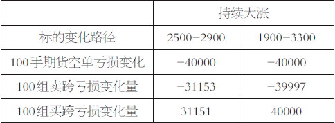 与卖出跨式不同,随标的物的涨跌,买入跨式会在正确的方向上持续加仓,表现为标的持续上涨或下跌相同点数,盈利会不断增加,直到等同于相同手数的期货。