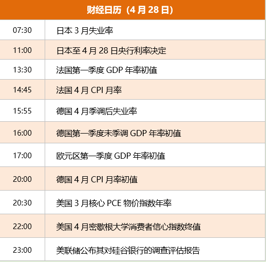 商务部:针对美国要求韩国芯片制造商禁止填补美国在华市场份额一事,商务部新闻发言人束珏婷表示,美方的做法是典型的科技霸凌,严重干扰企业间正常经贸往来,破坏市场规则和国际经贸秩序,威胁全球产业链供应链安全稳定,中方对此坚决反对。 商务部:商务部新闻发言人束珏婷表示,商务部将积极优化贸易环境,畅通企业稳订单拓市场的频道,推动其他国家畅通我商务人员申办签证渠道,支持外贸企业人员利用APEC(亚太经合组织)商务旅行卡赴相关经济体开展动态对接,发布相关国别贸易指南,进一步支持汽车企业建立和完善国际营销服务体系,培育汽车出口优势。 财政部:1-3月,全国国有及国有控股企业经济运行持续向好,主要效益指标保持增长。国有企业营业总收入197630.6亿元,同比增长6.4%。国有企业利润总额11247.1亿元,同比增长12.4%。国有企业应交税费15934.0亿元,同比增长2.3%。3月末,国有企业资产负债率64.7%,上升0.3个百分点。 统计局:1—3月份,全国规模以上工业企业实现利润总额15167.4亿元,同比下降21.4%。规模以上工业企业中,国有控股企业实现利润总额5892.4亿元,同比下降16.9%;股份制企业实现利润总额11290.3亿元,下降20.6%;外商及港澳台商投资企业实现利润总额3318.1亿元,下降24.9%;私营企业实现利润总额3894.1亿元,下降23.0%。 生态环境部:目前,全国生态保护红线已完成划定并发布。其中,陆域生态保护红线覆盖的国土面积不低于300万平方公里,海洋生态保护红线不低于15万平方公里。 交通运输部:今年“五一”假期从4月29日开始至5月3日结束,共计5天。七座以下(含七座)小型客车通行收费公路继续施行免收通行费政策,具体免费时段为4月29日0时至5月3日24时。 央视新闻:铁路五一小长假运输自4月27日至5月4日,为期8天,全国铁路预计发送旅客1.2亿人次,较2019年同期增长20%,超历史同期最高水平,日均发送旅客1500万人次。4月29日为客流最高峰日,预计发送旅客超过1900万人次,超历史最高峰日10%以上。 澎湃新闻:“五一”小长假临近,全国多地交管部门相继明确,假期期间对外地游客轻微交通违法采取教育提醒,不予处罚。例如湖北荆州交警表示,对五一期间景区、宾馆、酒店、商圈周边违法停车未妨碍交通的车辆,指出违法行为,给予口头警告,不拖车、不处罚。 环球网:4月以来,极端热浪席卷了东南亚大部分国家和地区,多地气温突破40℃,接连刷新了历史同期最高气温纪录。据悉,近八年来泰国气温不断上升,被认为是145年来最热的一段时间,4月多地气温超过40℃,体感温度达到了50℃以上,频频刷新历史纪录。 网信办:截至2022年底,我国开通5G基站231.2万个,5G用户达5.61亿户,全球占比超60%。移动物联网终端用户数达18.45亿户;2022年,我国数据产量达8.1ZB,同比增长22.7%,全球占比10.5%,位居世界第二;我国数字经济规模达50.2万亿元,稳居世界第二。