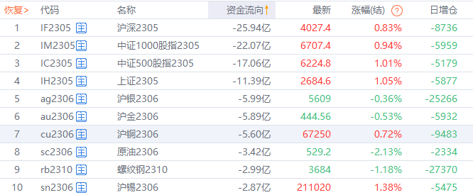 资金流向![]() ![]() 宏观产经央视新闻:今天上午,中国气象局召开例行新闻发布会。记者从发布会上获悉,今年以来,云南大部、四川西南部等地降水较常年同期偏少5至9成,气温较常年同期偏高,持续温高雨少致使云南大部气象干旱持续发展,截至4月26日,云南中旱以上面积33.6万平方公里。 中新经纬:“五一”假期准备自驾游?加油还可等一等!4月28日24时,国内成品油新一轮调价窗口将开启。机构普遍预计,国内成品油价格将迎年内第四次下跌。 品种资讯螺纹钢:247家钢厂高炉开工率82.56%,环比上周下降2.03%,同比去年增加1.63%;高炉炼铁产能利用率90.63%,环比下降0.87%,同比增加4.06%;日均铁水产量243.54万吨,环比下降2.34万吨,同比增加9.98万吨。(Mysteel) 建筑钢材本周实际检修/复产合计影响量为-16.17万吨,下周预计检修/复产合计影响量为-36.95万吨,周环比增幅129%,综合来看,今年减产的时间比去年提前约一个半月左右,减量的幅度和速度相对更明显一些。(Mysteel) 铁矿石:全国45个港口进口铁矿库存为12886.99万吨,环比降147.55万吨;日均疏港量324.16万吨增3.98万吨。分量方面,澳矿6121.12万吨降56.52万吨,巴西矿4296.22万吨降114.93万吨。(Mysteel) 焦炭:山东市场部分钢厂对焦炭采购价下降100元/吨,调整后具体情况如下:准一级干熄冶金焦:灰分≤13,硫份≤0.7,CSR≥60,全水≤0.5,调整后执行2423元/吨;到厂现汇含税价,以上价格为钢厂基准价格,2023年4月28日0时起执行。 大豆:布宜诺斯艾利斯谷物交易所警告称,可能需要再次下调阿根廷2022/23年度大豆作物产量预估,因该国农业遭遇历史性干旱。阿根廷是全球最大的豆油和豆粕出口国,但几十年不遇的干旱使大豆产量降至23年低位。 LPG:据隆众资讯,最新数据显示,截至4月27日当周,中国液化气港口样本库存量为189.17万吨,较上期(20230420)增加12.38万吨或7.00%。本周国内港口到船小幅增加,主要集中在华北(含山东)地区,华南、华东到船均有下降。 (文章来源:东方财富研究中心) (责任编辑:admin) |