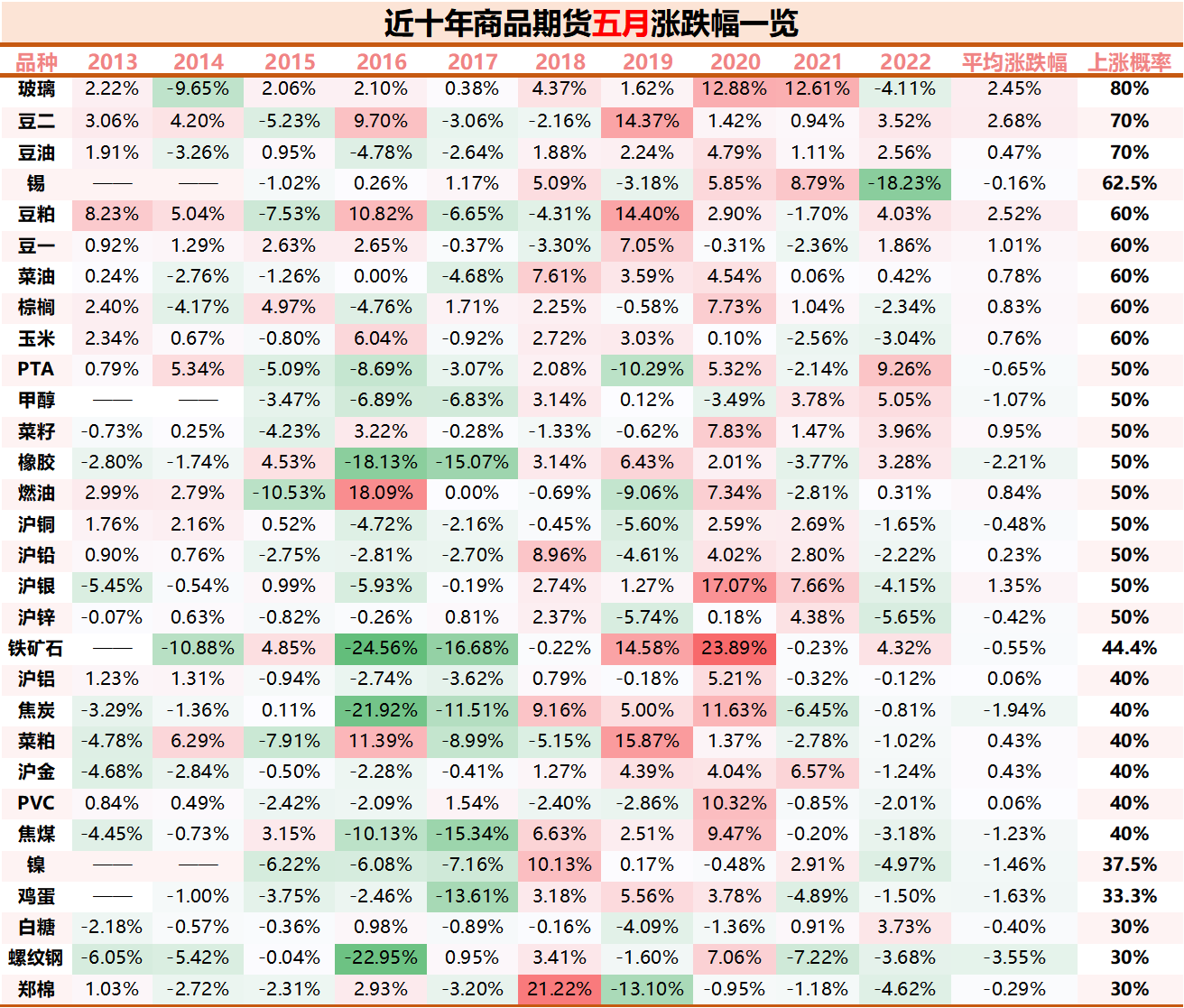 品种季节性规律总结——近十年商品期货五月涨跌幅一览! 东方财富研究中心 04月28日 数据来源:东方财富Choice注:品种涨跌幅均取自主力连续合约(文章来源:东方财富研究中心) (责任编辑:admin)