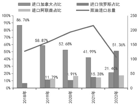 图为我国菜油进口结构 C 市场面临的宏观以及产业环境