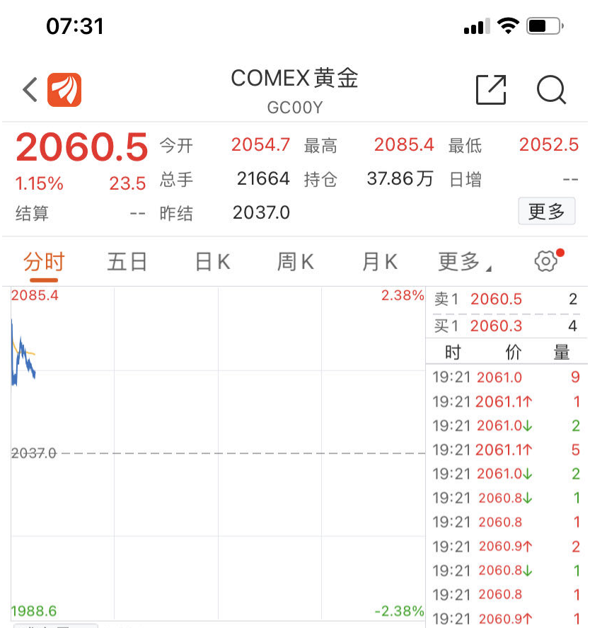 创历史新高 现货黄金突破2085美元!大妈后悔买少了 商家:忙到下午2点才吃饭