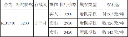 该组合需要支付的净权利金=263-126-143=-6元/吨,期权的最大行权收益=3200-2950=250元/吨,最大损失等于价格涨幅超过3450元/吨的部分。