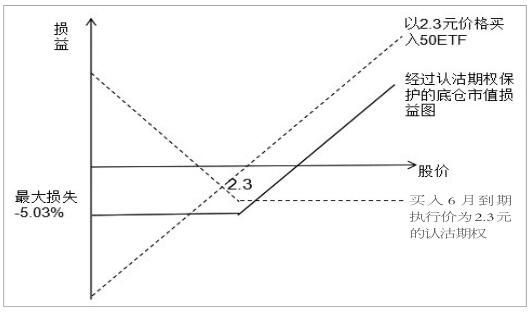 1.标的资产下跌,刘先生将期权行权。即使认沽期权到期时底仓市值大跌20%,也可以以每份2.3元的执行价卖出50ETF,市值变为5060-253-1.32=4805.68万元,市值总收益下跌5.03%。