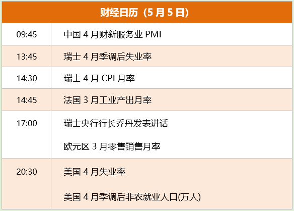 外交部:国际货币基金组织日前发布亚太地区经济展望报告,认为中国经济的强劲反弹为亚太和全球经济提供了巨大动力,预计今年中国经济增速将达5.2%,对全球经济增长贡献率有望达34.9%。中国经济的盎然春意和勃勃生机将继续为世界经济复苏作出更大的贡献。 央行:2023年4月,人民银行对金融机构开展常备借贷便利操作共2.4亿元,其中隔夜期0.2亿元,7天期2.2亿元。期末常备借贷便利余额为2.2亿元。常备借贷便利利率发挥了利率走廊上限的作用,有利于维护货币市场利率平稳运行。隔夜、7天、1个月常备借贷便利利率分别为2.85%、3.00%、3.35%。 银保监会:公布2022年度保险业偿付能力监管工作情况,通报指出,保险业偿付能力指标维持在合理区间,风险总体可控。2022年末,保险业综合偿付能力充足率为196%,远高于100%的达标线。其中,财产险公司、人身险公司和再保险公司的综合偿付能力充足率分别为238%、186%、300%。 证券时报:4月财新中国制造业采购经理指数(PMI)录得49.5,低于3月0.5个百分点,2月以来首次落至收缩区间。 央视新闻:国家计算机病毒应急处理中心和360公司联合发布了一份调查报告,揭秘了美国中央情报局利用网络攻击他国的相关情况,披露部分发生在中国和其他国家的网络安全典型案事件的具体过程,全面深入分析美国中央情报局的网络攻击窃密和相关现实危害活动,以及其对美国成为“黑客帝国”所做的贡献。 国泰君安:美联储此前的快速加息对于银行来说可能是“假加息”,而未来美联储停止加息,银行却可能面临着“真加息”。美国经济的“类滞胀”状态仍可能持续。 财联社:白宫经济顾问委员会(CEA)在报告中警告称,如果发生债务违约,美国经济将受到“严重损害”,其中最为灾难性的长期违约情景,可能导致830万人失业,股市暴跌45%。报告指出,即使是不那么严重的情况也会阻碍美国经济,这表明围绕债务上限的政治摊牌会带来重大的财政成本。 界面新闻:欧洲央行公布利率决议,将三大关键利率上调25个基点,符合市场预期。存款利率上调至3.25%,前值为3.0%;主要再融资利率上调至3.75%,前值为3.5%;边际贷款利率上调至4.0%,前值为3.75%。 世卫组织:专家组5月4日召开会议,以决定新冠是否仍然属于国际关注的突发公共卫生事件。近期,美国等国已经开始解除新冠国家紧急状态。希望今年终结新冠全球紧急状态。2020年1月30日开始对新冠发出最高级别警报。在此状态下,全球需要投入资金并协作以共同应对疫情。