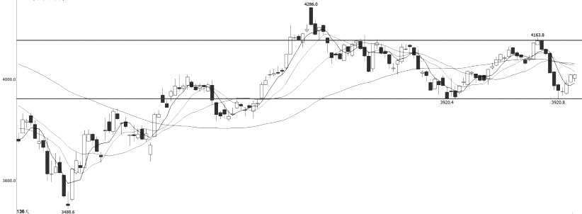 IF加权近期跌至前期低点3920.4点一线后逐步止跌企稳。量能方面,价格止跌反弹过程中成交量有所收窄,持仓量持续下滑。指标方面,均线系统整体缺乏明显的趋势方向,MACD指标快慢线在零轴附近运行。综合来看,IF加权日线整体处于区间整理,近期价格跌至区间下沿一线后企稳反弹,建议短线偏多思路对待,上方关注区间上沿4163.8点一线的压力。 IC 先抑后扬