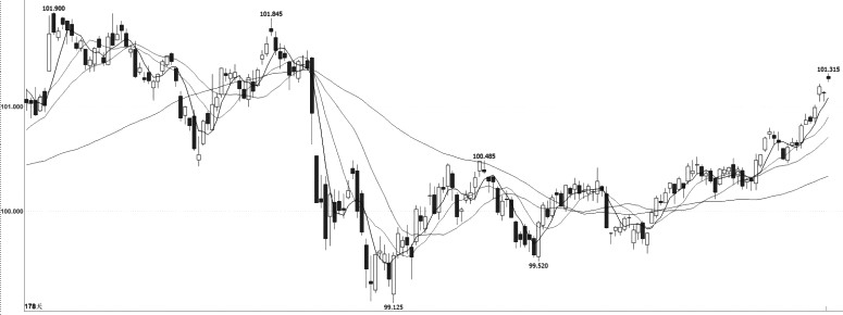十债加权近期价格沿5日均线继续走高,且上涨速度有所加快。量能方面,上涨过程中成交量一度有所放大,但持仓量开始由增仓转为减仓。指标方面,均线系统呈现多头排列,MACD指标跟随价格继续走高。综合来看,十债加权近期价格继续振荡走高,建议继续维持偏多思路,上方关注去年11月中旬高点101.500点一线。(中原期货 刘培洋) (责任编辑:admin) |
