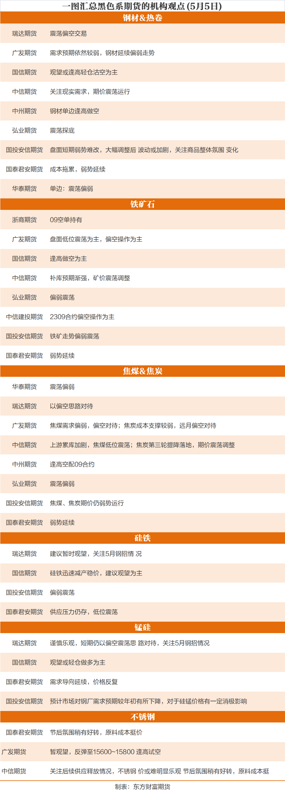 精选 | 黑色系期货观点汇总 5月5日 周五