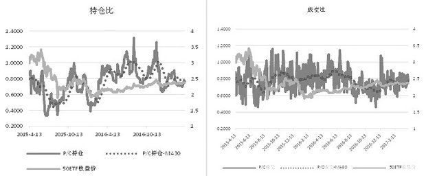 P/C成交量比值及持仓量比值是指认沽成交量(持仓量)/认购成交量(持仓量)。P/C比值有两个重要的作用:反映投资者结构以及反映当前市场情绪。