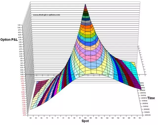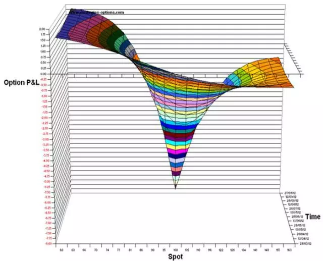 期权日历价差的卖方希腊值风险分配则是 +Gamma ,-Vega, -Theta.