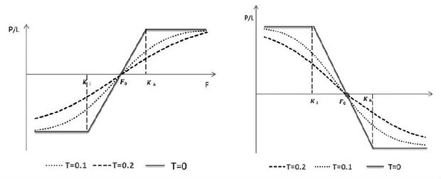 不同种类的期权到期盈亏也有自己的特点。两只期权权利金之差是债务垂差的最大亏损,也是信用垂差的最大盈利。在策略建立初期,债务垂差的投资者先垫付了最大亏损,而信用垂差的投资者先预支了最大盈利,这也正是众多国外期权教材提到的信用垂差的优势,这一点后文会做详细分析。