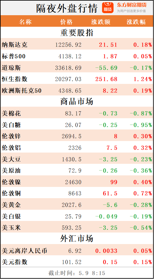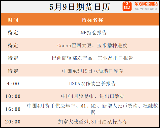 东方财富期货早餐 5月9日周二