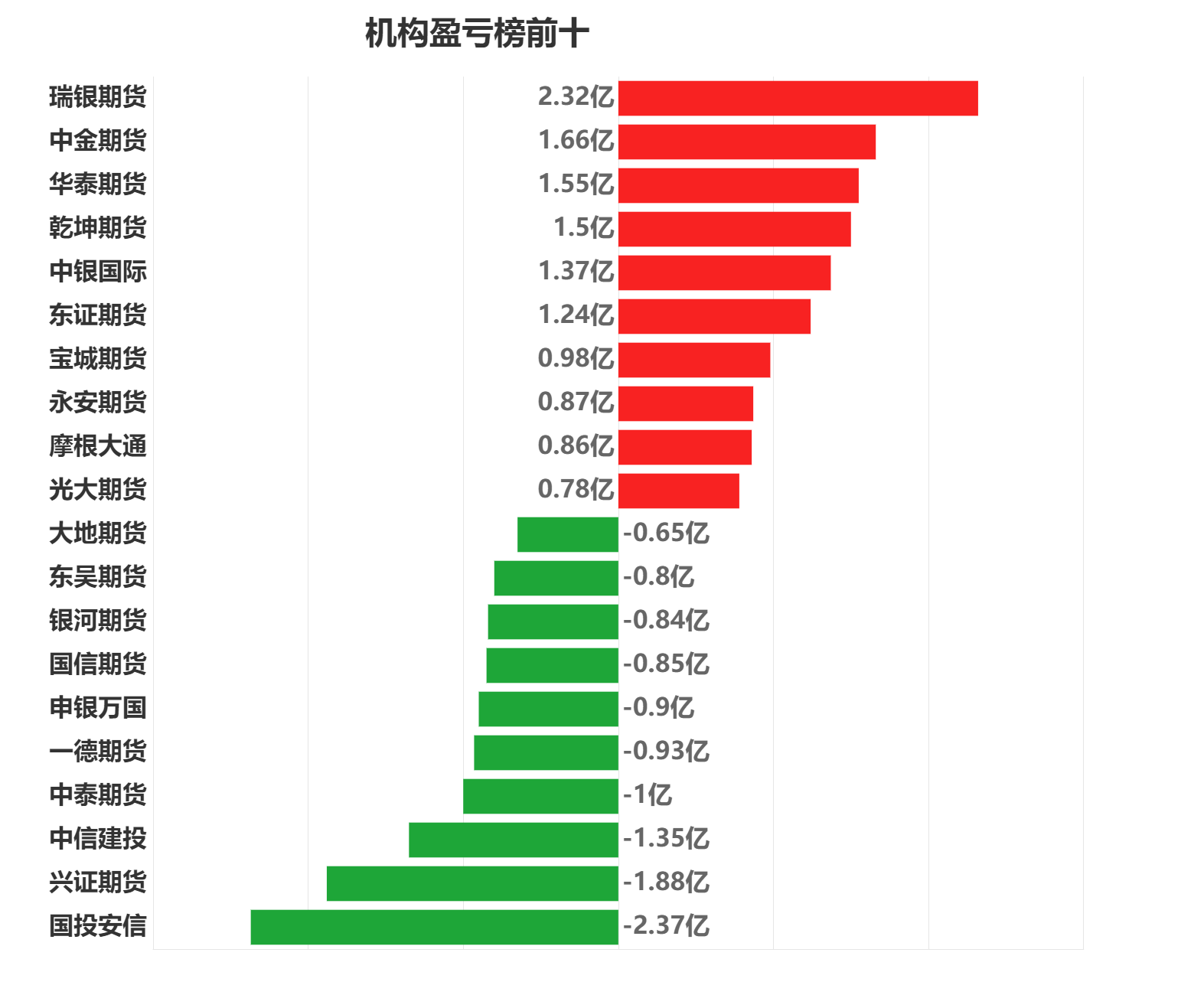 ![]() ![]() ![]() 品种盈亏榜:今日商品期货中棉花盈利第一,为1.58亿元。 铁矿石亏损第一,为1.81亿元。 ![]() 就棉花而言,今日席位盈利前三为中国国际、中粮期货、华融融达,分别盈利3870.97万元、3091.32万元、3014.25万元。 今日席位亏损前三为华泰期货、广州期货、浙商期货,分别亏损3046.41万元、1323.78万元、1287.30万元。 ![]() 就铁矿石而言,今日席位盈利前三为宝城期货、乾坤期货、申银万国,分别盈利5592.21万元、3936.69万元、3363.35万元。 今日席位亏损前三为国泰君安、国信期货、一德期货,分别亏损6090.08万元、5000.16万元、3593.95万元。 ![]() 席位盈亏榜:今日机构席位中瑞银期货盈利第一,为2.32亿元。 国投安信亏损第一,为2.37亿元。 ![]() 就瑞银期货而言,今日品种盈利前三为中证500股指、中证1000股指、沪深,分别盈利11154.43万元、7976.43万元、5005.43万元。 今日品种亏损前三为甲醇、低硫燃油、20号胶,分别亏损967.48万元、126.68万元、105.56万元。 ![]() 就国投安信而言,今日品种盈利前三为中证1000股指、PTA、棉花,分别盈利2146.50万元、1447.27万元、774.12万元。 今日品种亏损前三为中证500股指、玻璃、沪铜,分别亏损12272.04万元、5165.11万元、2600.82万元。 ![]() 注:可通过点击东方财富期货PC端左侧“龙虎榜”栏目及东方财富期货APP行情页面“龙虎榜”栏目查看各类机构持仓及盈亏榜单信息。 ![]() ![]() 以上图表数据来源:东方财富Choice (文章来源:东方财富研究中心) (责任编辑:admin) |