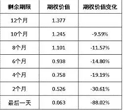 我们通常用Theta来衡量期权期限对于期权价值影响程度的敏感性指标。不同剩余期限的期权,时间变化对于期权的影响程度也不一样。仍然以上述期权为例。假设期权存续期内期权一直处于平价状态,随着时间流逝期权价值的变化情况。可以看到,随着剩余时间的逐渐缩短,期权时间价值的流逝速度也逐渐加快。