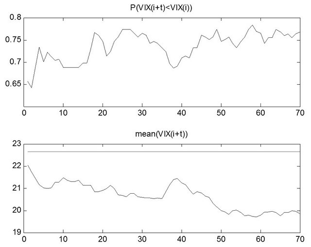 这各区间的确定,可以作为VIX指数衍生品投资的参考,一旦VIX跌出这个区间的下界,我们就可以看多VIX,一旦VIX超过这个区间的上线,我们就可以看空VIX指数。