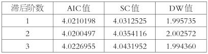 表为不同滞后阶数的自回归结果