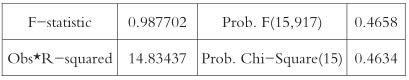 由表可知,在拟合GARCH(1,1)模型之后,此时原假设成立的条件是F统计量和Chi—Square统计量相对应的概率值大于给定的显著性水平5%,表明残差序列不再存在ARCH效应。