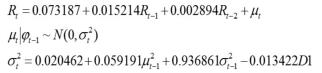 首先,用Eviews7.2软件对选定对象的日收益率序列进行滞后1、2、3阶的自回归估计。