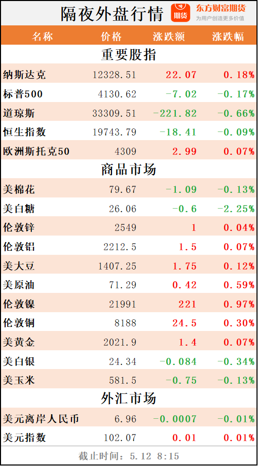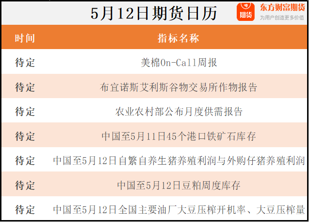 东方财富期货早餐 5月12日周五