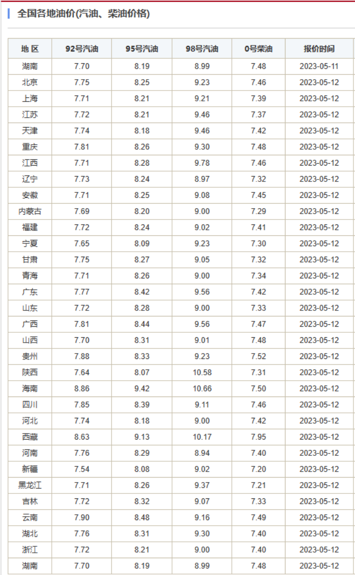 新一轮油价调整,进入倒计时! 就在下周二(5月16日)24时,国内第十轮油价调整将正式开启。按照目前第8个工作日的参考原油变化率情况,机构预测汽柴油下调价格或可达350元/吨。近期需要加油的朋友,或许可以再等上一等。 国际油价方面,潜在经济衰退的持续担忧拖累能源需求预期,近期原油期货接连走低,触及一周低点。海外分析师认为,目前对石油市场有“多重显著影响”,包括美国债务上限的戏剧性事件、酝酿中的地区银行担忧,以及推动美联储仍然激进的政策前景的通胀预期。 来看详情—— 下周二晚开启新一轮调价 距离油价下调只剩两个工作日了,别急着加油! 按照国内现行成品油价格调整机制,以10个工作日为一个调价周期,本轮国内成品油零调整将于5月16日(下周二)24时开启,迎来今年的第十轮调价窗口期。 继上一轮油价小幅下调后,本次调价周期内国际油价继续下行。据机构测算,本轮调价有望出现“两连降”。 据卓创资讯测算,5月12日,国内第8个工作日参考原油变化率为-7.73%。预计汽柴油下调350元/吨,折算下调0.27-0.30元/升。 ![]() 暂按当前下调幅度计算,以油箱容量在50L的家用轿车为例,加满一箱油将节省13.5-15元,下调幅度较为明显。需要加油的车主朋友们,建议可以稍微等等。当然,最终的调价幅度和区间,还要等待下周二国家发改委的官宣。 复盘来看,今年以来国内成品油价格前九轮调价分别为“3涨4跌2搁浅”。在上一轮调整中,国家发改委对国内汽、柴油价格每吨分别降低160元和155元。调整过后,今年以来国内汽油累计上涨210元/吨,柴油价格累计上涨200元/吨。 ![]() 据最新全国报价,除海南、西藏两省,目前各地92#汽油普遍还维持在“7元时代”,95#汽油则在8.07-8.48元/升区间。在此次调价过后,部分地区95#汽油有望降至8元以下。 ![]() 国际油价震荡下行 油价的调整,自然与国际原油价格的变动相关。 5月11日(周四),国际原油期货收盘下跌。纽约商品期货交易所WTI6月原油即期合约收盘下跌1.69美元/桶,至70.87美元/桶,跌幅为2.33%。洲际交易所布伦特7月原油即期合约收盘下跌1.43美元/桶,至74.98美元/桶,跌幅为1.87%。 就近期行情来看,国际油价前期触底小幅爬升,随后继续震荡下行,为此次油价调整带来下调空间。 ![]() ![]() 消息面上,5月11日,石油输出国组织(OPEC)进一步上调中国2023年石油需求增长预估,但因其他地区的需求增长存在可能下行的风险,因此全球需求增长的整体预估不变。中国石油需求预期将增长80万桶/日,高于上月预估的增长76万桶/日。 另据当地媒体报道,伊拉克已向土耳其发出正式请求,要求通过一条从伊拉克北部半自治的库尔德斯坦地区到土耳其港口杰伊汉的管道重新开始石油出口,这可能会使全球原油供应量每天增加45万桶。 外媒援引能源咨询公司RitterbuschandAssociates的分析师在一份报告中表示,石油市场面临“重大问题”,美国债务上限不确定性,最近可能引发大部分石油行业信贷紧缩的银行问题,经济衰退的可能性仍然很大。 美国市场研究刊物《7点市场报告》(SevensReport)分析师表示,目前对石油市场有“多重显著影响”,包括美国债务上限的戏剧性事件、酝酿中的地区银行担忧,以及推动美联储仍然激进的政策前景的通胀预期,这最终将导致潜在的深度经济衰退,这将打击需求。 评论称,这些因素将在短期内继续影响国际原油价格和成品油价格,因为美国债务上限问题、银行担忧以及经济衰退的威胁都将给能源综合市场带来压力,而任何(或)所有因素的改善都将为市场提供推动力和缓解反弹。 (文章来源:中国基金报) (责任编辑:admin) |
