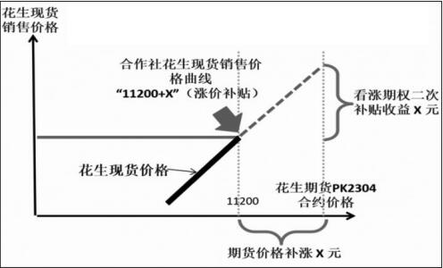 图为“保险+期货”多方参与流程 项目实施期间,内乡县邮储、农商行等多家银行为104个村近200个农户提供总计1637.8万元的普惠金融贷款,资助农户投保面积达到800亩。其中,内乡农商行授信1256.3万元,邮储银行内乡支行对花生农户授信381.5万元,建设银行和工商银行为此推出精准产品对接。贷款主要用于农户前期垫付农资生产资料支出。 阶段二:“订单收购+含权贸易”实际操作 一、3月6日,新湖瑞丰与内乡新型农业经营主体“内乡县自然源农业合作社”签订花生采购合同,约定采购价格11200元/吨(期货价格11100元/吨),交货日期截止到3月10日,同时签订补充协议,约定3月24日前如果期货价格上涨超过11200元(买入一个入场价格11122元,执行价11200元的虚值看涨期权),新湖瑞丰通过场外看涨期权二次结算超出部分价格(美式期权)补贴给农户价格额外上涨的获利。