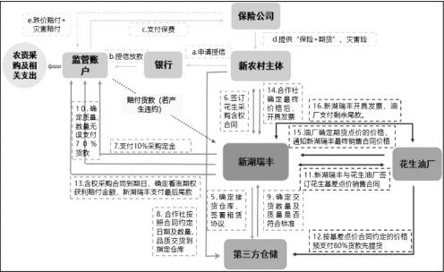 六、3月中旬,花生交割等级价格下调到10400—10500元/吨,较前期高点回落近1000元/吨。因期货价格出现大幅回调,场外看涨期权补贴暂未能达到预期收益,但农户通过前期销售价格锁定,在高位出货,获得了较好的稳定收益,大幅降低了库存贬值风险。 阶段三:“银行共管账户模式”,保障资金安全 银行、保险、期货三方合作金融创新6+业务模式从资金、保险、现货销售、期货+期权对冲等全要素服务新农村主体无忧种植花生、保本增收销售花生。在贸易资金操作安全性管理方面,内乡县人民政府联合新湖期货、内乡农商行在全国首例实施落地了银行账户多方共管系统,并完成该模式的账户资金转账监管。账户操作流程: 1.合作社开通特定共管银行账户,与新湖瑞丰协议账户共管权限,账户出金操作需要瑞丰复核。 2.合作社跟瑞丰签订单合同,瑞丰按照合同支付10%货款至共管账户。 3.合作社依据订单合同跟银行申请订单贷款(普惠金融贷款政策)。 4.银行根据合作社资质审核贷款申请,并发放至共管账户。 5.合作社使用贷款及瑞丰预付资金开始花生采购等业务(此时出金需要瑞丰复核)。 6.合作社采购好花生现货后,按照订单合同约定时间、地点交付瑞丰。 7.瑞丰确认货物品质、数量无异议后,支付剩余货款至共管账户,货款货权划转完成。 8.合作社收到货款后,偿还银行贷款/开展后期操作(此时出金需要瑞丰配合)。 自然源农业合作社和新湖瑞丰一致确认账户网银出金联合管理权限,同时自然源农业合作社申请关闭手动柜台出金权限,新湖瑞丰拥有账户网银出金复核权利并配合指定银行和自然源农业合作社完成款项划拨。 银行开户后经双方授权合作确认后,由银行独立寄送账户网银转账复核使用U宝等材料至新湖瑞丰。如后期自然源农业合作社变更出金授权复核等相关流程,需双方协商一致另行出具书面材料办理权限变更。此模式保障了资金的专款专用及有效流向监管。 [“期货6+”项目成果及亮点] 项目探索金融市场全流程、全要素综合服务农业生产体系。播种前,银行贷款解决农资采购资金紧张问题;生长期,“保险+期货”保障农户预期收益;收割后,“订单+含权贸易”帮助农户畅通销售及二次增收。“期货6+”丰富金融风险管理工具服务新型农业集体经济模式,促进服务实体经济、助力“三农”发展的功能发挥。 一、“保险+期货”保价效果明显,补偿减产损失 “保险+期货”保障农产品价格下跌风险,避免“谷贱伤农”;在农产品价格上涨时仍有保底赔付。双向获利的模式让花生种植户真正做到安心种、放心卖、保价增收。 2022年,受干旱影响,新上市花生价格大涨的情况下,“保险+期货”仍然为承保花生户进行保底赔付,总赔付金额约63.514万元,每亩赔付金额12.7028元,超过农户自缴保费9.67元/亩。随着花生期货与现货价格的上涨,农户手里的花生现货也获得不错的销售利润,同时项目实施一定的保底收益打消未触发理赔的担心。 同时,部分地区因干旱大幅减产甚至颗粒无收的情况下,该项目根据保险合同规定,按照0.22吨/亩进行固定产量的价格保险赔付,这在一定程度上减少了产量下降给农户带来的收入影响。 二、“订单收购+含权贸易”拓宽销售渠道,增加二次收益 “订单收购+含权贸易”或解决农户面临收购以后长期的销售环节风险和价格波动问题。通过叠加一个场外看涨期权,在约定时间内现货价格上涨的情况下进行二次结算,帮助农户转移和释放存储价格波动风险的同时增加了额外收入。 2022年国庆节后花生现货价格上涨,需求端观望,市场处于有价无市的相持阶段,合作社和农户手中库存高价销售不畅通。因此,内乡县政府以合作社为试点,协调贸易公司新湖瑞丰定向采购、扩大销售,同时保障了后期花生现货价格可能上涨带来的收益。 卖家农业合作社签订销售合同后,期货价格出现大幅回调,但现货价格相对稳定,因此场外看涨期权补贴暂未能达到预期收益。但农户通过前期销售价格锁定,在高位出货,获得了较好的稳定收益,大幅降低了库存贬值风险。在此行情下,新湖瑞丰获得净利润230元/吨。新湖期货将预期利润进行二次返还,用于合作社或者村集体第三阶段操作中含权贸易的涨价保险补贴。 三、银行“共管账户”首创系统,保障资金安全 在花生贸易交收实践过程中,新湖瑞丰与合作社对资金安全、产品质量、交货数量及时间等问题存有顾虑。因此,内乡县政府、新湖期货和新湖瑞丰联合内乡县农商行探索设立了“共管账户”,验证了银行账户多方监管系统的可行性及操作便利性,建立资金安全监管的长效机制。新农村主体开办指定贸易使用账户,贸易公司、银行共同管理资金流向,在确认交货产品质量、数量及资金用途后,在双方共同授权下该账户的贸易资金方可划转。该模式保障了订单资金及后期银行普惠金融贷款专款专用的监管问题,加强资金流转安全性、使用路径的专一,以及增加银行层面对贷款资金贷后监管手段。 四、探索脱贫户粮食购销创业新模式 脱贫户建立村级合作社,与贸易公司合作,采购粮食。合作社以高于采购价将粮食销售给贸易公司,账期1年。由贸易公司把粮食销售给下游企业,下游企业或贸易公司给合作社支付部分粮食款(双方监管,划拨银行贷款利息,其余盈利分红),一年贷款到期时贸易公司给主体合作社支付剩余粮